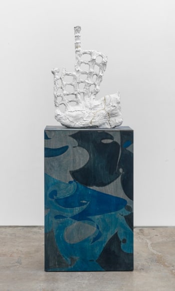 fired and glazed ceramic, grout, leaf gold, plywood, wood stain, lacquer